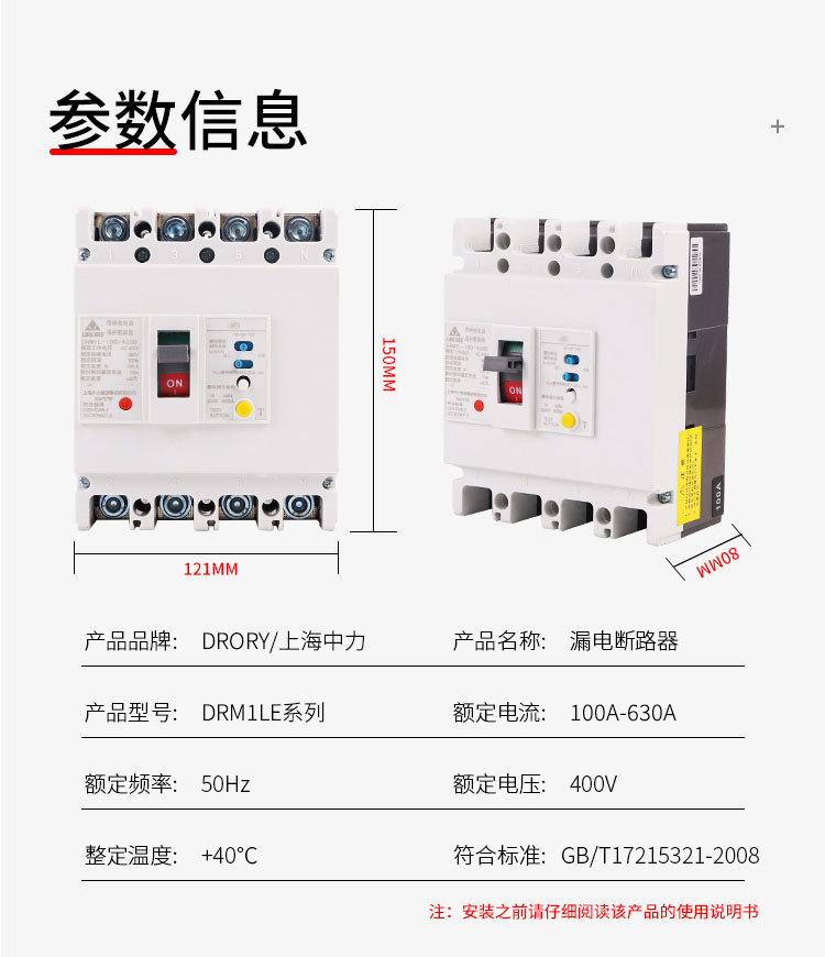 首頁 產品中心 漏電斷路器系列 DRM1LE-100型~800型; 3P~4P 63A~800A漏電斷路器系列
