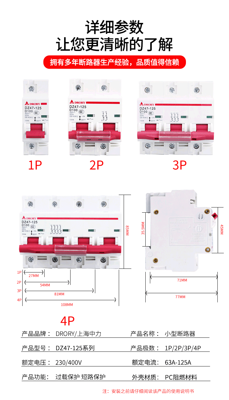 DZ47-125; TGC1s-125; 1P~4P 63A~125A小型斷路器系列