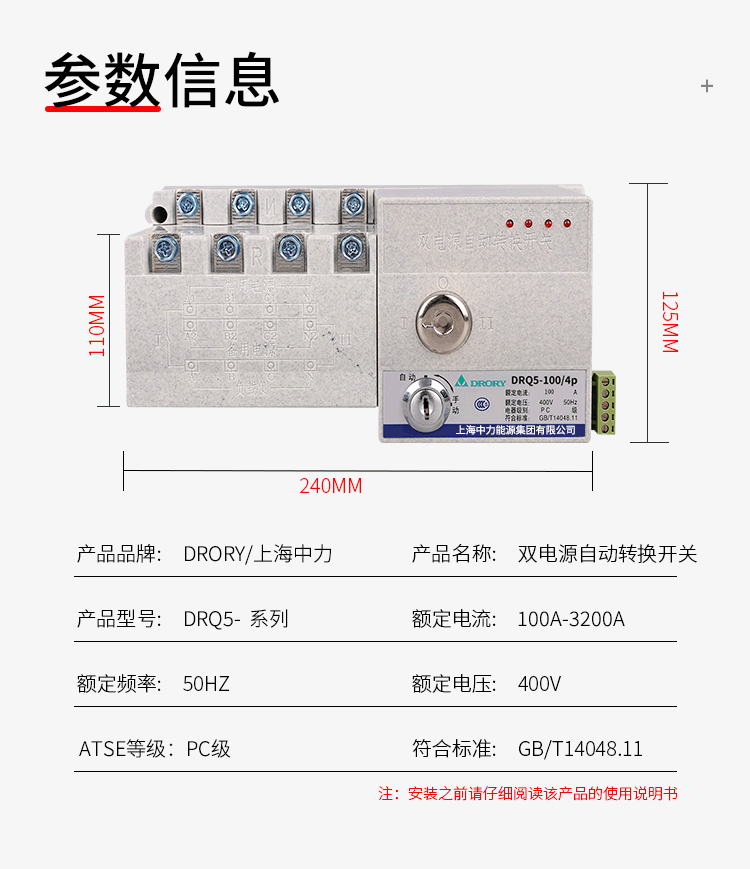 DRQ5-□ /4P 100A-3200A雙電源開關系列