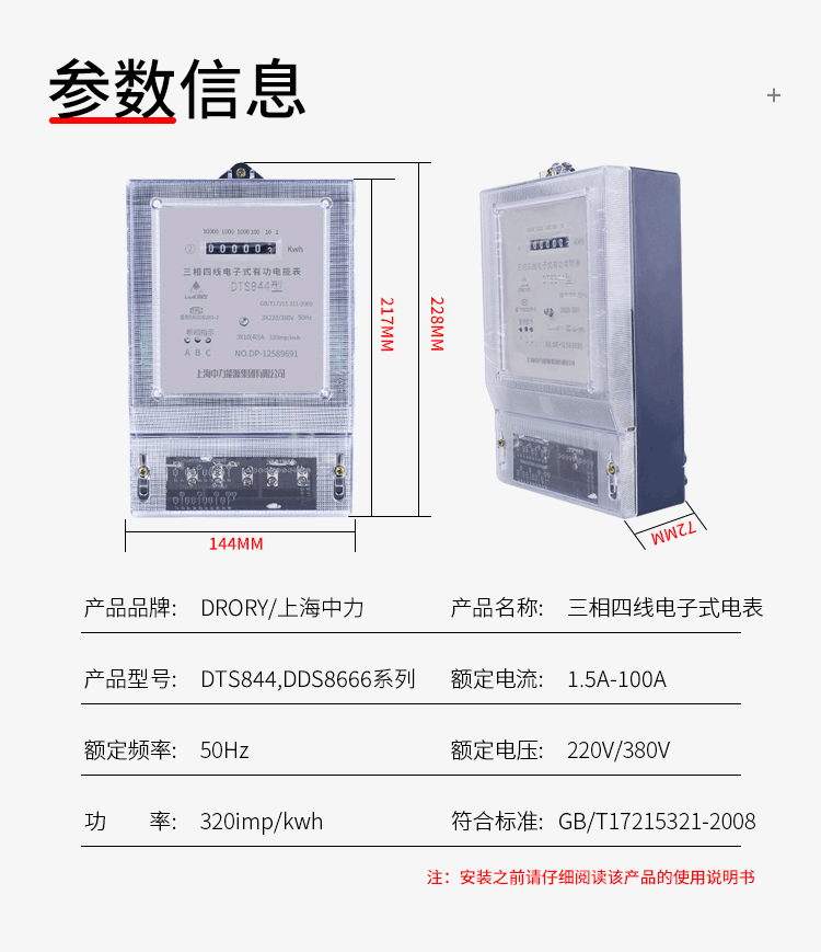 DTS844, DDS8666; 電流: 1.5A-100A三相四線電子式電能表系列