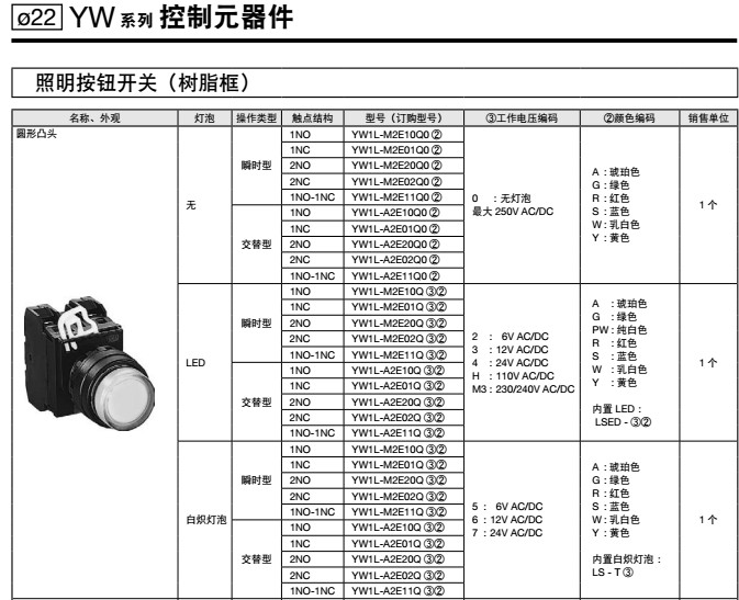全新原裝IDEC和泉按鈕開關YW1L-M2E10Q4G凸頭帶燈24V自復位YW-DE