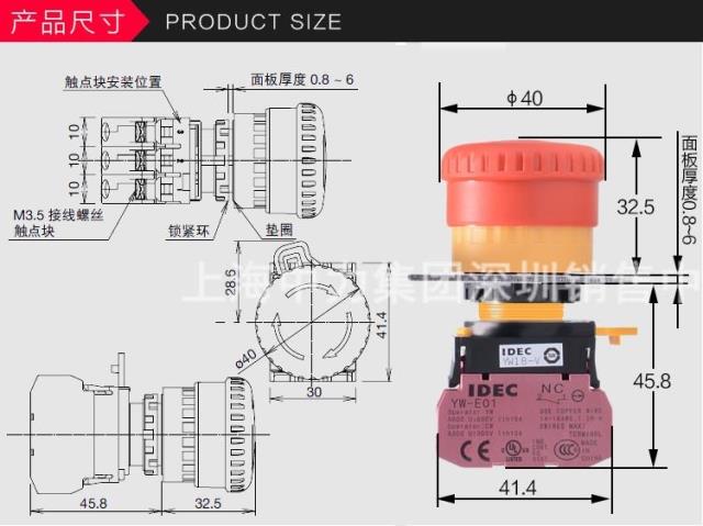 全新原裝IDEC和泉22孔急停按鈕開關YW1B-V4E03R/21R/12R/30R現貨