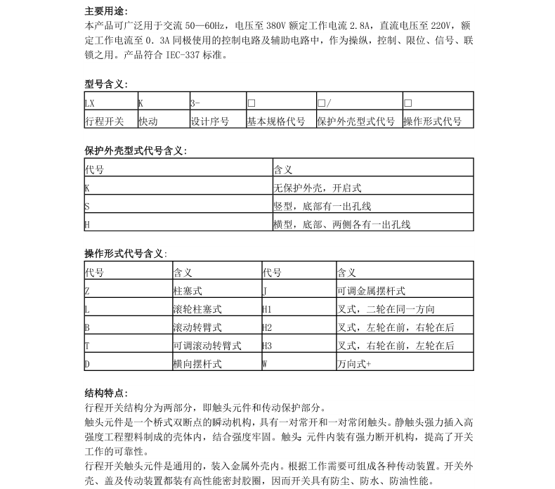 LXK3系列行程開關LXK3-20S/T,D,B,J,W,L,Z,H1,H2,H3
