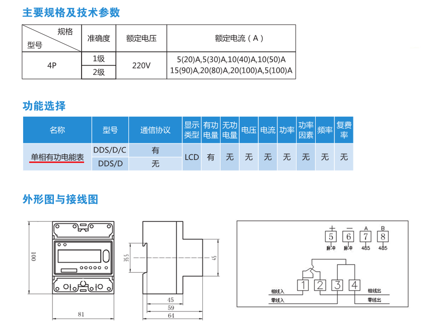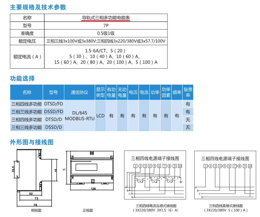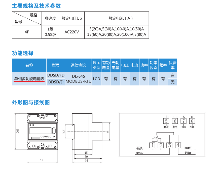 LCD液晶顯示導(dǎo)軌式多功能/有功電能表單相/三相電表