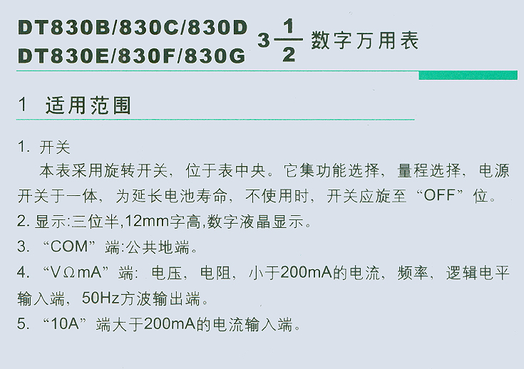 DT830B/830C/830D、DT830E/830F/830數字萬用表