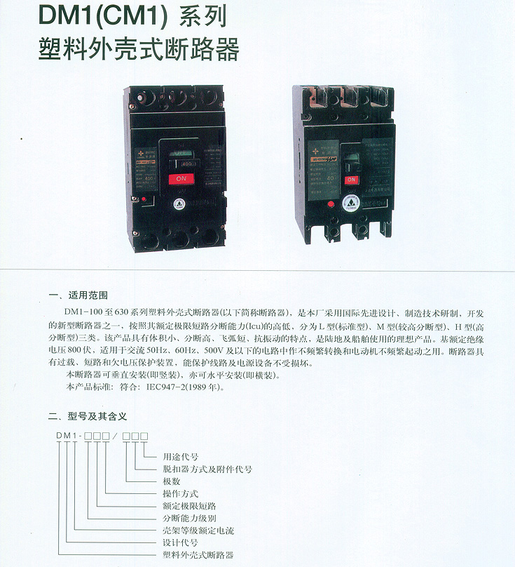 首頁 產品中心 低壓電器產品總匯系列 斷路器系列 DM1(CM1)系列塑料