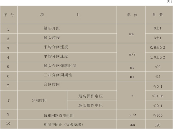 主要技術(shù)參數(shù) 斷路器的裝配調(diào)整參數(shù)見表1