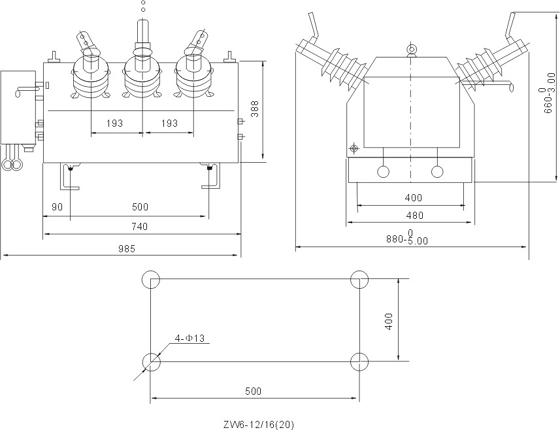 - ZW6-12/630-16(20) 型 戶外真空斷路器