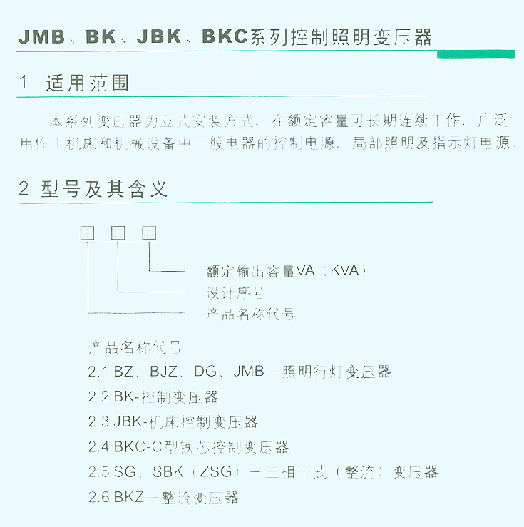 JMB、BK、JBK、BKC系列控制照明變壓器