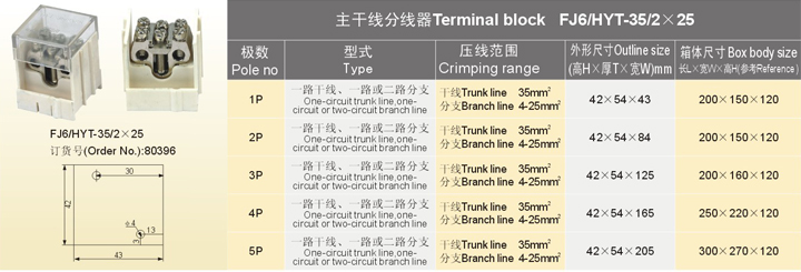 首頁 產品中心 接線端子產品系列 FJ6/HYT FJ6/HYT-35/2×25