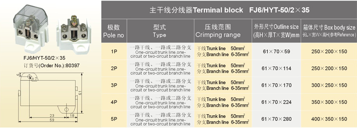 首頁 產品中心 接線端子產品系列 FJ6/HYT FJ6/HYT-50/2×35