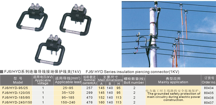 FJ6/HYD系列絕緣導線接地保護線夾(1kV)