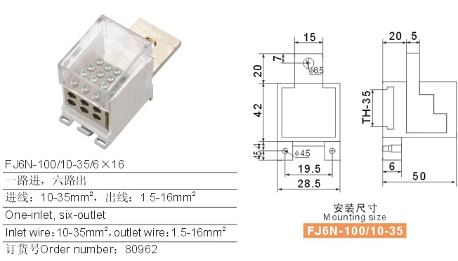FJ6N-100/10-35/6×16零線端子(一路進,六路出)