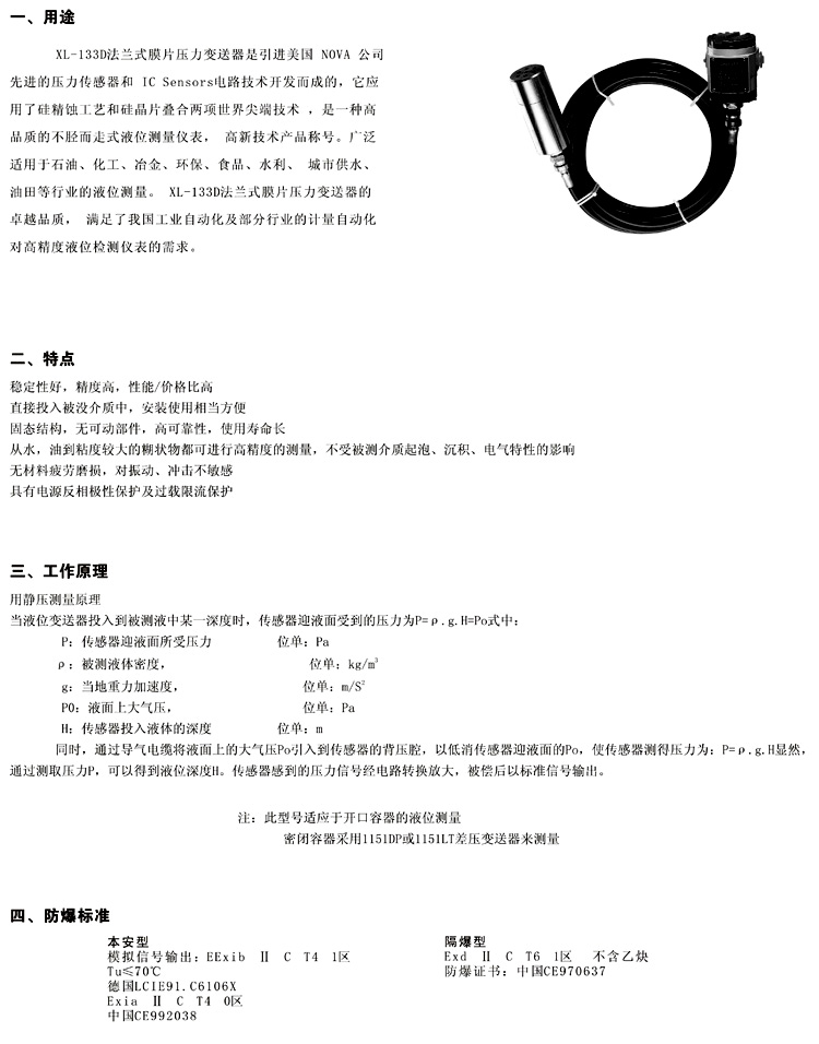 XL-133D法蘭式膜片壓力變送器