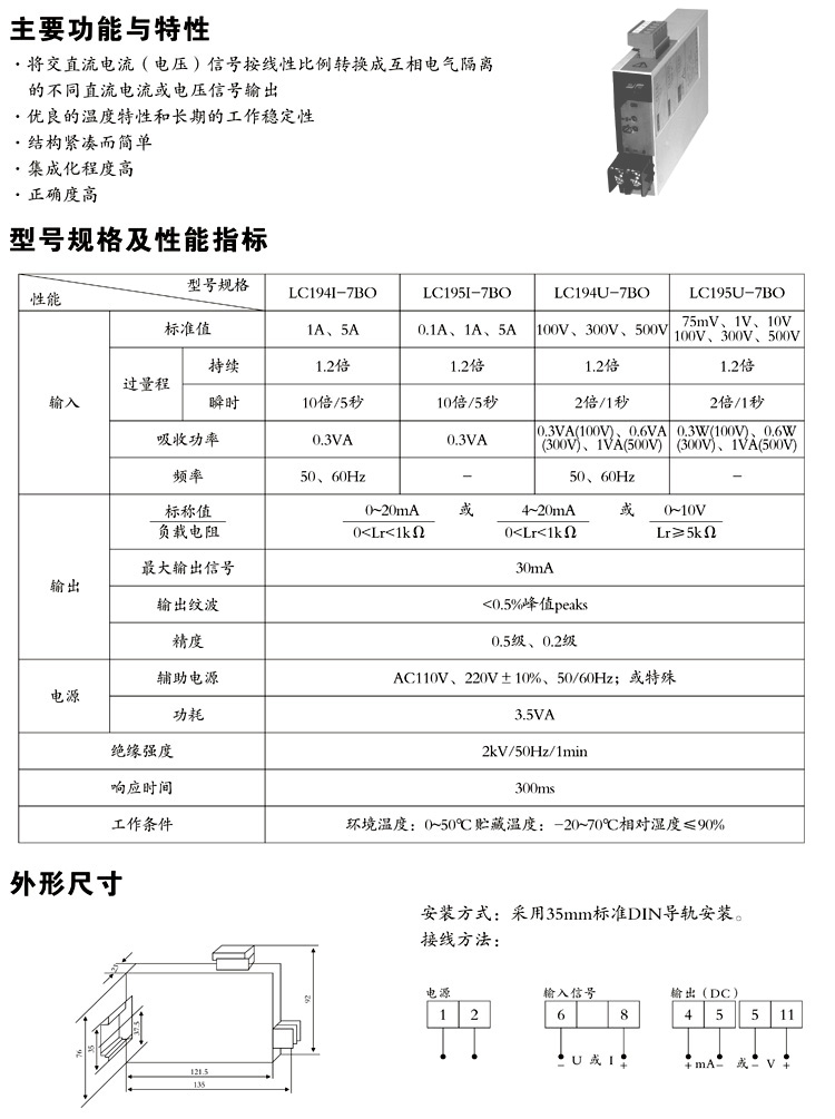 首頁 產品中心 儀器儀表產品系列 LC系列交直流電流(電壓)隔離變送器