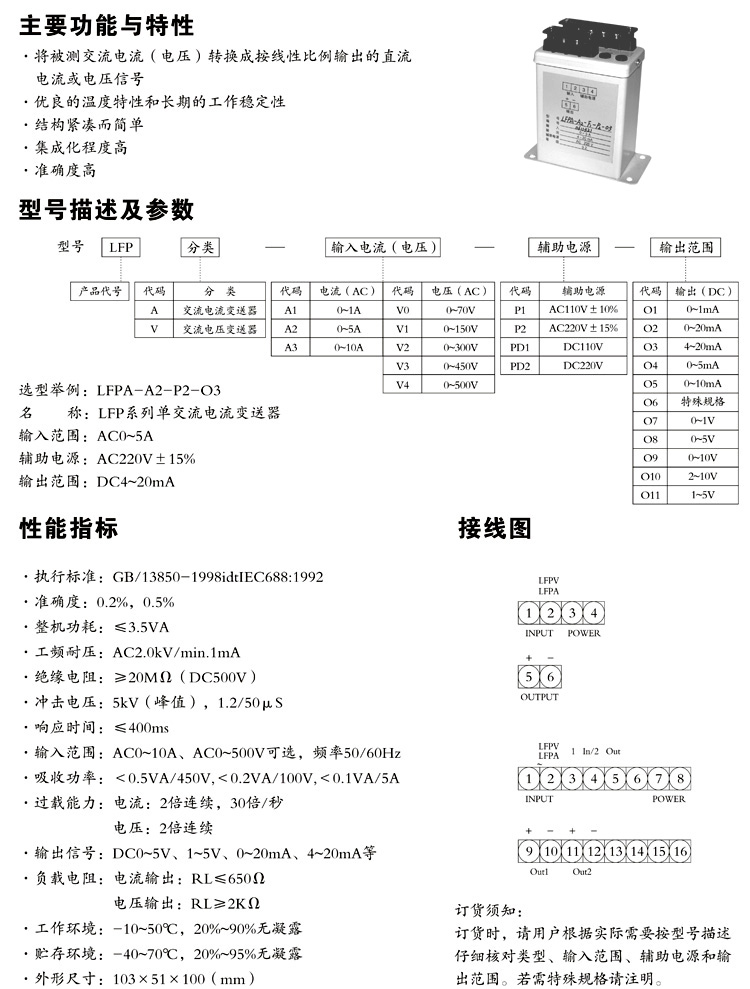 首頁 產品中心 儀器儀表產品系列 LFP系列交直流電流(電壓)變送器