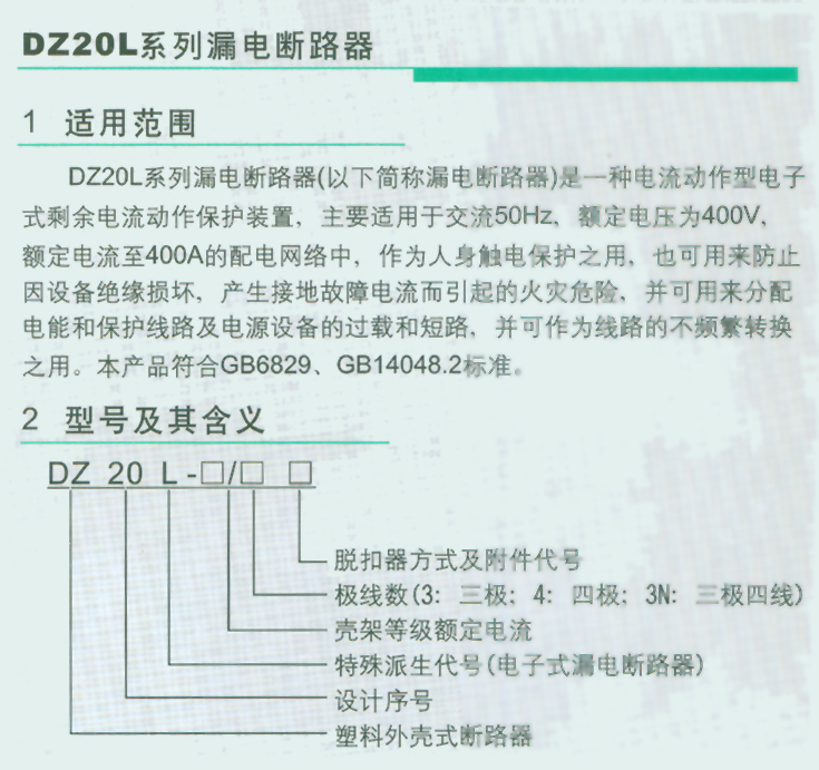 DZ20L系列漏電斷路器