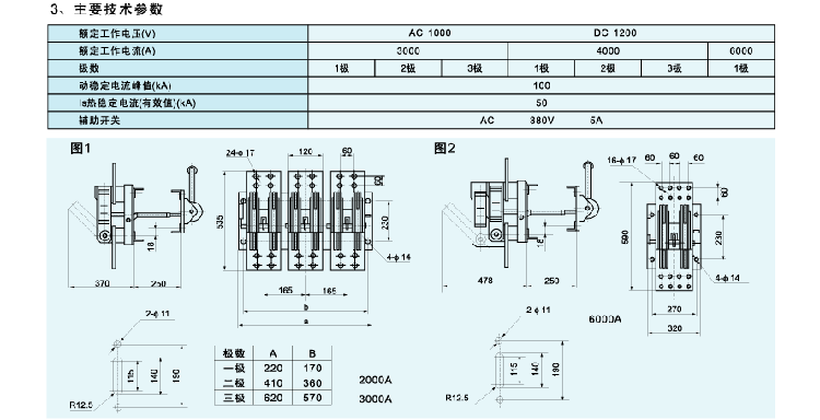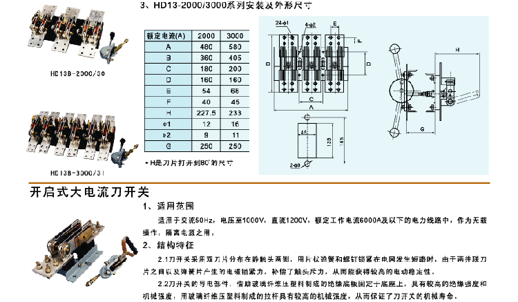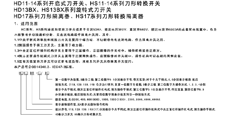 HD11B~17B、HS11B~17B、HD11FA、HD11F系列開(kāi)啟式刀開(kāi)關(guān)
