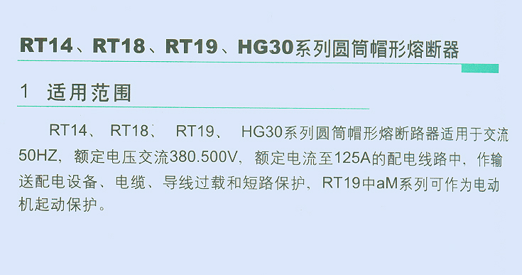 首頁 產品中心 低壓電器產品總匯系列 熔斷器系列 RT14、RT18、RT19、HG30系列圓筒帽形熔斷器