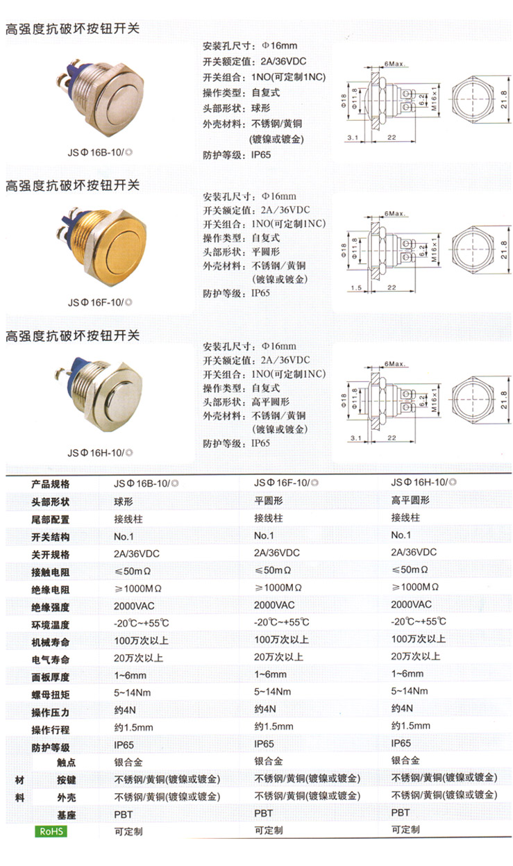 首頁 產品中心 金屬高強度抗破壞按鈕系列 JSΦ16高強度抗破壞按鈕開關