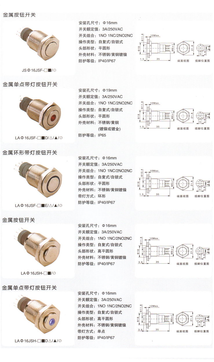 首頁 產品中心 金屬高強度抗破壞按鈕系列 LAΦ16JS按鈕開關(帶燈)