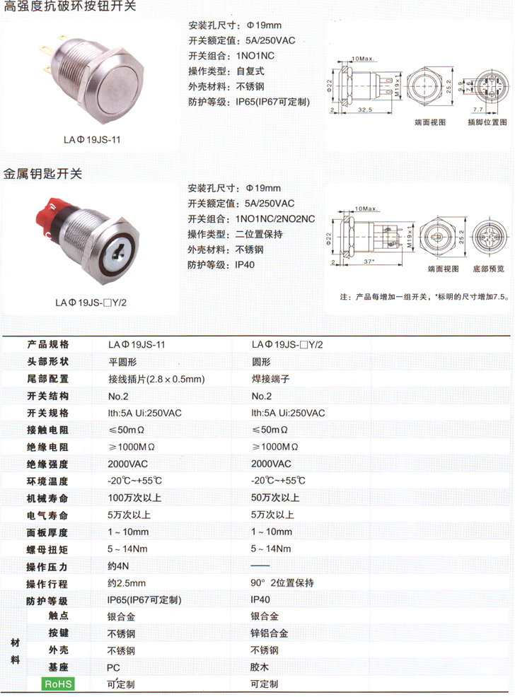 LAΦ19JS金屬鑰匙開關