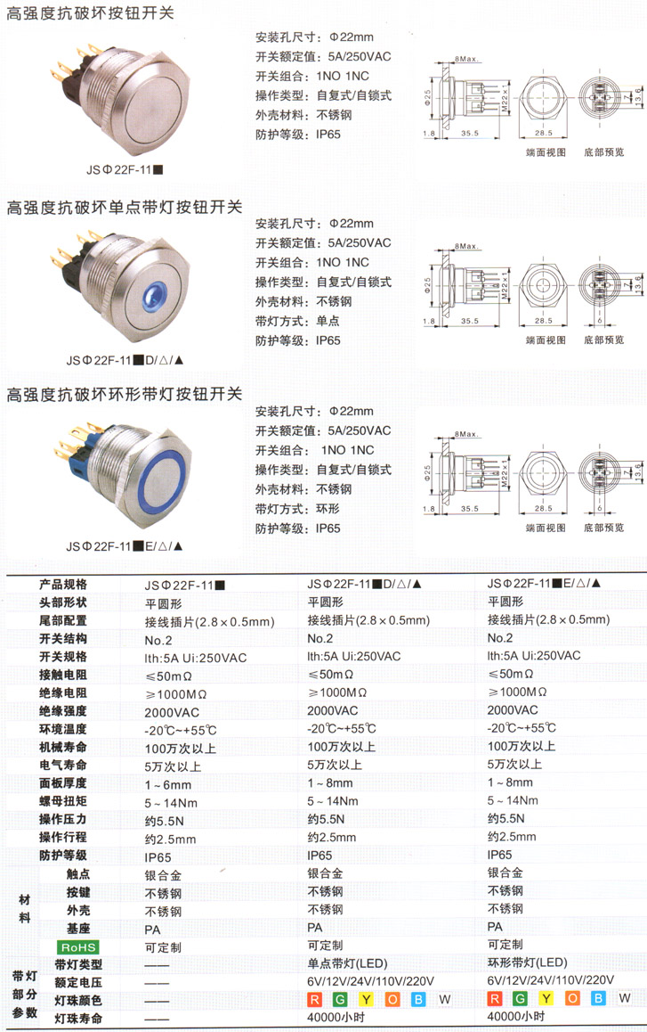 首頁 產品中心 金屬高強度抗破壞按鈕系列 LS22帶燈按鈕開關